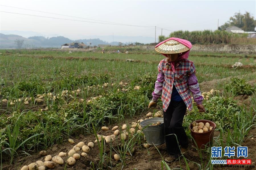 云南省德宏傣族景頗族自治州芒市軒崗鄉(xiāng)農(nóng)民提著采挖好的馬鈴薯準備前去裝箱。當?shù)伛R鈴薯每畝產(chǎn)值近6000元,是村民增收的主要途徑之一(2014年3月21日攝)。近年來,云南省大力推進扶貧攻堅,走出了一條整村、整鄉(xiāng)、整縣、整州推進的扶貧開發(fā)新路子。黨的十八大以來,以習近平同志為總書記的黨中央高瞻遠矚、深謀遠慮,以高度的政治感、使命感和責任感,把扶貧開發(fā)工作提升至治國理政新高度,廣泛凝聚社會各界力量,推進實施精準扶貧方略,為到2020年全面建成小康社會奠定堅實基礎。按照中央部署,通過產(chǎn)業(yè)扶持、轉(zhuǎn)移就業(yè)、易地搬遷、政策兜底等方式,到2020年將實現(xiàn)7017萬農(nóng)村貧困人口脫貧目標。新華社記者 胡超 攝
