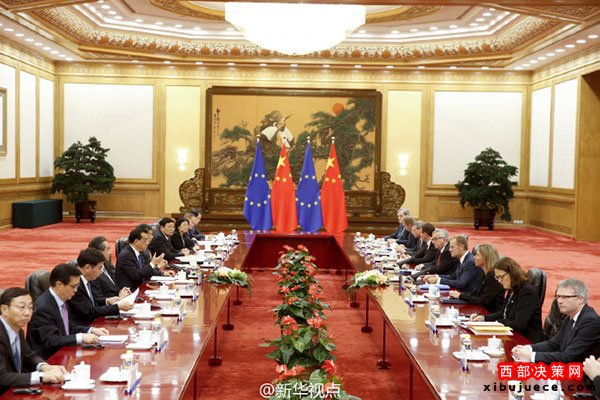 新華網(wǎng)北京7月12日電國務(wù)院總理李克強12日下午與歐洲理事會主席圖斯克、歐盟委員會主席容克共同主持第十八次中國歐盟領(lǐng)導(dǎo)人會晤。雙方就鞏固中歐政治互信、穩(wěn)步落實合作共識、加強國際和地區(qū)事務(wù)中的溝通與協(xié)調(diào)等深入交換意見。(據(jù)新華社“新華視點”微博報道)