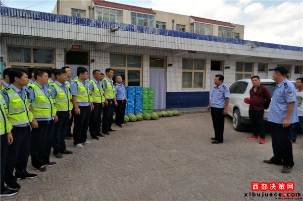 西部決策網(wǎng)訊( 鄒坤 通訊員 崔春月) 時值夏日,天氣持續(xù)高溫,2016年8月10日下午,靖邊縣公安局黨委委員、交警大隊長王世崗、辦公室主任黃瑞峰等一行來到該大隊城區(qū)二中隊慰問在高溫酷熱天氣下堅守崗位的一線民警,深刻表達了大隊黨委對一線民警的關(guān)心和關(guān)愛,并將防暑降溫物品及時送到了一線民警手中。