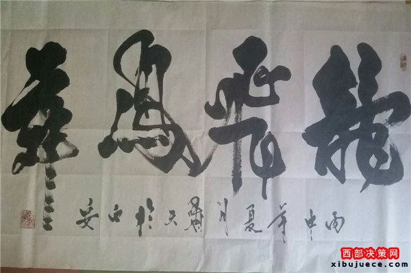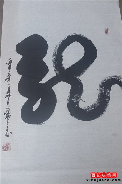 龍乃華人想象中最尊貴、最吉祥之物。生活之中無所不在,上下五千年,仍一以貫之,舉世無與倫比。華人更以龍的傳人自居,一旦風(fēng)起云涌,海生駭浪,則龍卷風(fēng)云,霞光萬丈。其“一筆龍”書法作品將書法和繪畫非常巧妙的而高度的融合,依易經(jīng)智慧,集意念、氣功為一體,運(yùn)筆如神,酬勁有力,一氣呵成,氣勢(shì)磅礴,形象逼真。整個(gè)字體呈現(xiàn)出一條蒼龍騰躍飛天之勢(shì),寓意了中國龍騰飛吉祥的福兆,更展現(xiàn)了中華民族不屈不饒的民族精神。