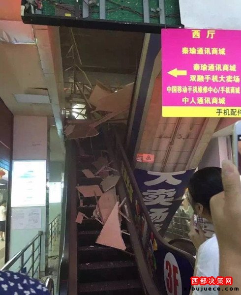 西部決策網(wǎng)訊(通訊員 展?。?nbsp;今天中午1點(diǎn)左右,西安市西華門(mén)海星智能廣場(chǎng)四樓賣(mài)場(chǎng)電梯頂?shù)蹴斖蝗幻撀?。商戶們說(shuō),房頂是木質(zhì)結(jié)構(gòu),坍塌毫無(wú)預(yù)兆。事故所幸暫時(shí)沒(méi)有人員受傷!
