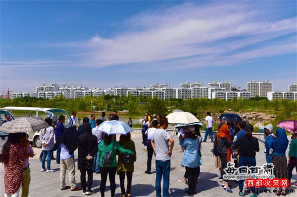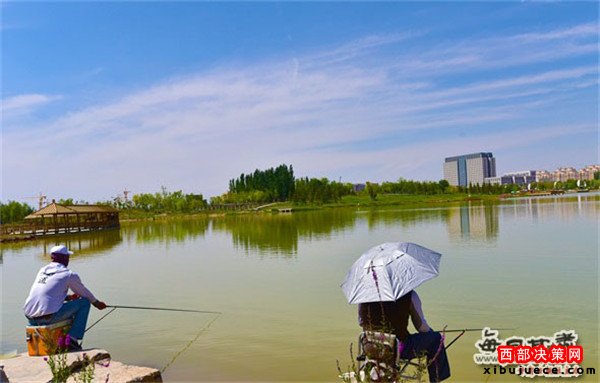 9月4日,“文博會網(wǎng)絡(luò)宣傳周”采訪團75家媒體近百名記者一行走進蘭州新區(qū)時,就被碧波蕩漾的2號湖濱區(qū)所吸引,湖邊盛開著紅的、黃的、紫的鮮花,湖里隱約可見各種彩色的錦鯉,游人或愜意地在湖邊垂釣,或聚集在觀景臺欣賞音樂噴泉,或悠然自得地泛舟湖上。