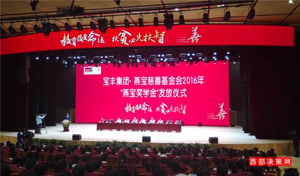昨天上午,寶豐集團·燕寶慈善基金會2016年“燕寶獎學(xué)金”發(fā)放儀式在寧夏銀川市舉行。捐贈儀式上,寶豐集團·寧夏燕寶慈善基金會獎勵9.2萬名學(xué)子,發(fā)放獎學(xué)金2.64億元,新增受助學(xué)生2.6萬人。