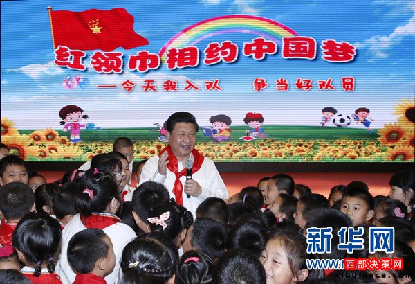 ?。?014年5月30日,習近平來到北京市海淀區(qū)民族小學,參加慶祝“六一”國際兒童節(jié)活動。這是習近平在參加少先隊入隊儀式時,向少先隊員們致以節(jié)日問候。新華社記者鞠鵬攝)