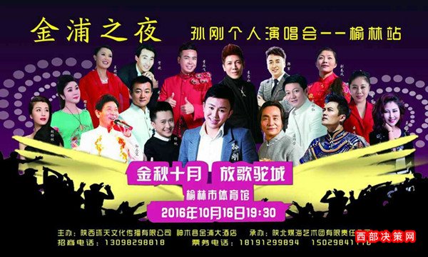 西部決策網(wǎng)榆林訊 (李建治 賀成友 石海瑞 呂正) 現(xiàn)場報(bào)道 塞上秋高氣爽,塞上秋色迷人。9月25上午9點(diǎn),由陜西環(huán)天文化傳播有限公司、神木縣金浦大酒店主辦,陜北煤海藝術(shù)團(tuán)責(zé)任有限公司承辦的“金浦之夜孫剛個(gè)人演唱會(huì)——榆林站”在榆林煤海大舞臺(tái)召開了新聞發(fā)布會(huì),榆陽區(qū)文體事業(yè)局局長和60余家新聞媒體參加了新聞發(fā)布會(huì)。