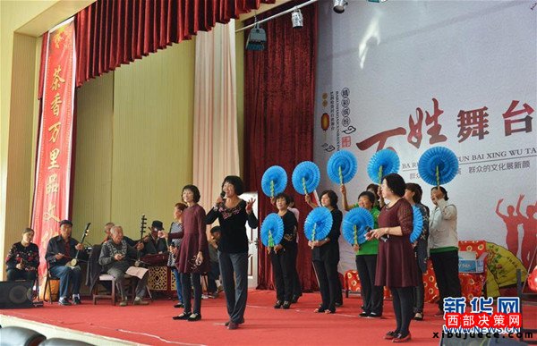 準(zhǔn)格爾旗巴潤哈岱村村民在村里的文化活動室表演自導(dǎo)自演的節(jié)目(9月24日攝)。