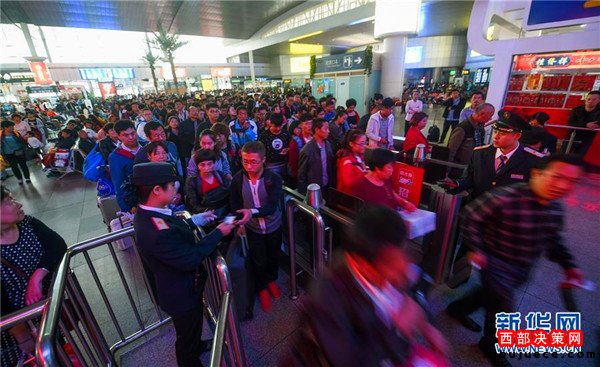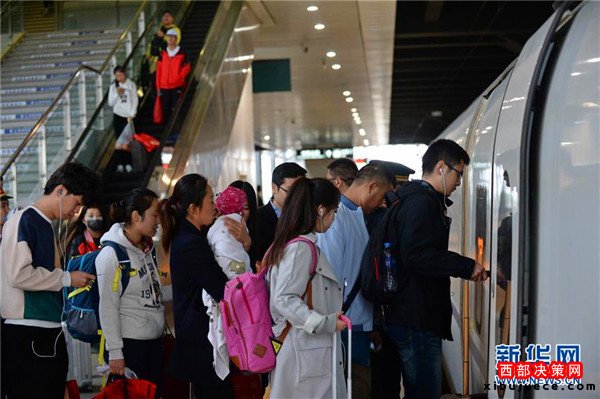 10月7日,乘客在鄭州火車(chē)站內(nèi)準(zhǔn)備進(jìn)站乘車(chē)。