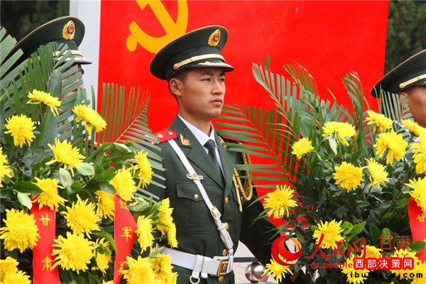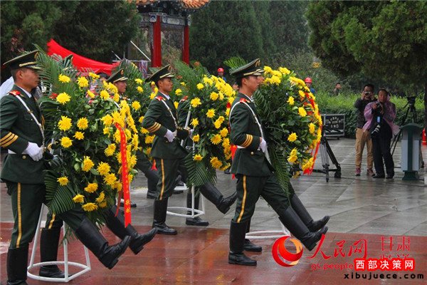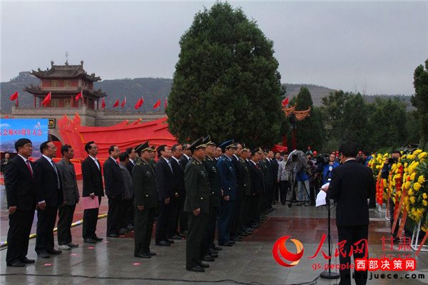 甘肅省領導和各界群眾代表向會師紀念塔敬獻花籃