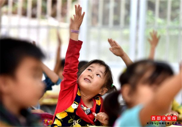 10月10日,在廣西都安瑤族自治縣隆福鄉(xiāng)漁洞小學(xué),學(xué)前班的同學(xué)們?cè)谡n堂上踴躍舉手回答提問。