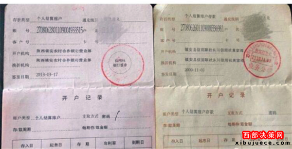 查詢得知:以上村名均在2009年11月3日,由村上統(tǒng)一在黃家灣信用社代辦‘一卡通’賬戶(為了方便惠農(nóng)資金及時發(fā)放);但黃家灣信用社職工席某查詢明細(xì)是從2010年5月份起至2012年底,之后(一卡通)賬戶沒進過任何惠農(nóng)資金;2014年12份張承根的‘一卡通’賬戶神奇般復(fù)活,再次打進惠農(nóng)資金。