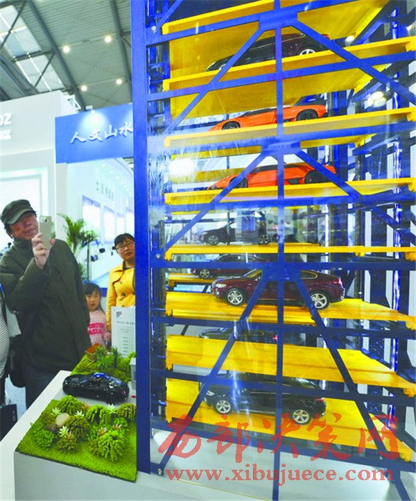 絲博會上,陜西隆翔停車設備集團推出的APP預約立體智能停車的停車場,吸引了大量參觀人員的駐足圍觀。