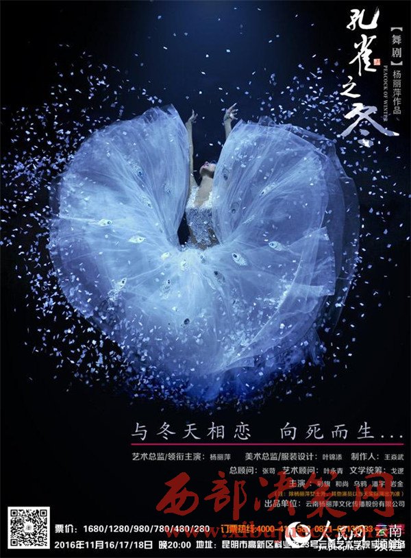 10月25日,由楊麗萍領(lǐng)銜主演并擔(dān)任藝術(shù)總監(jiān)的舞劇《孔雀之冬》在中航·璽樾舉行全球發(fā)布會(huì)?!犊兹钢穼⒂?1月16日至18日在云南藝術(shù)學(xué)院實(shí)驗(yàn)劇場(chǎng)(麻園)進(jìn)行公演,拉開(kāi)全國(guó)巡演的序幕。時(shí)隔4年,在2012版舞劇《孔雀》之后,舞神楊麗萍將再次起舞。
