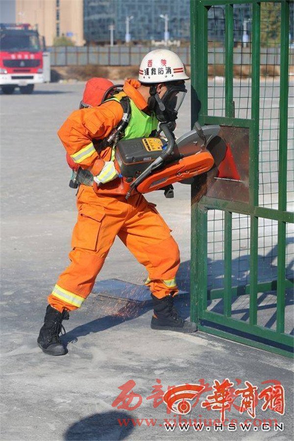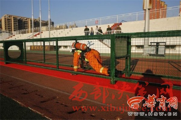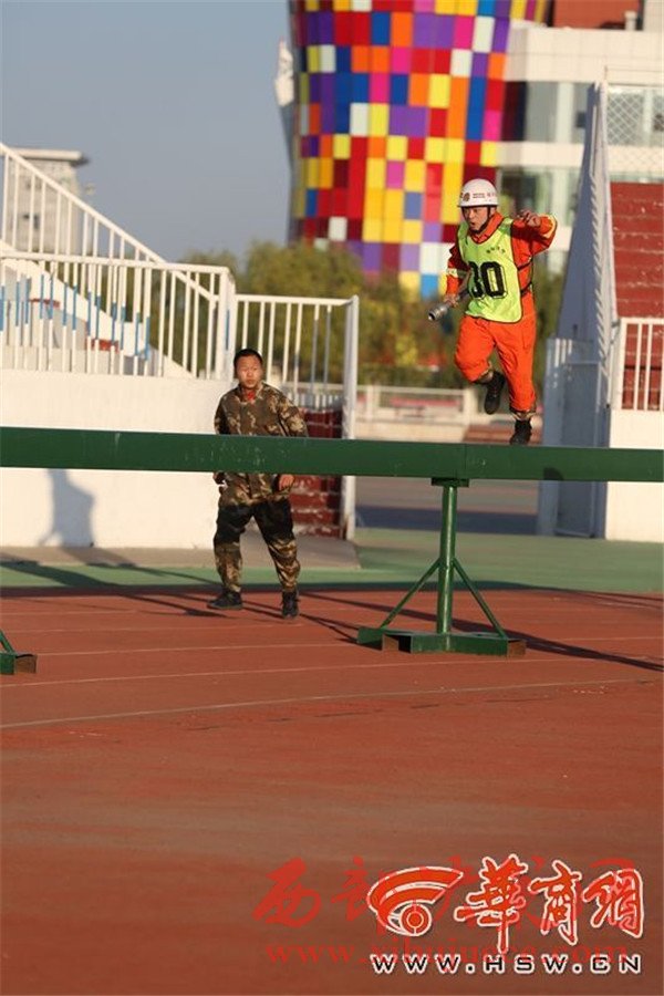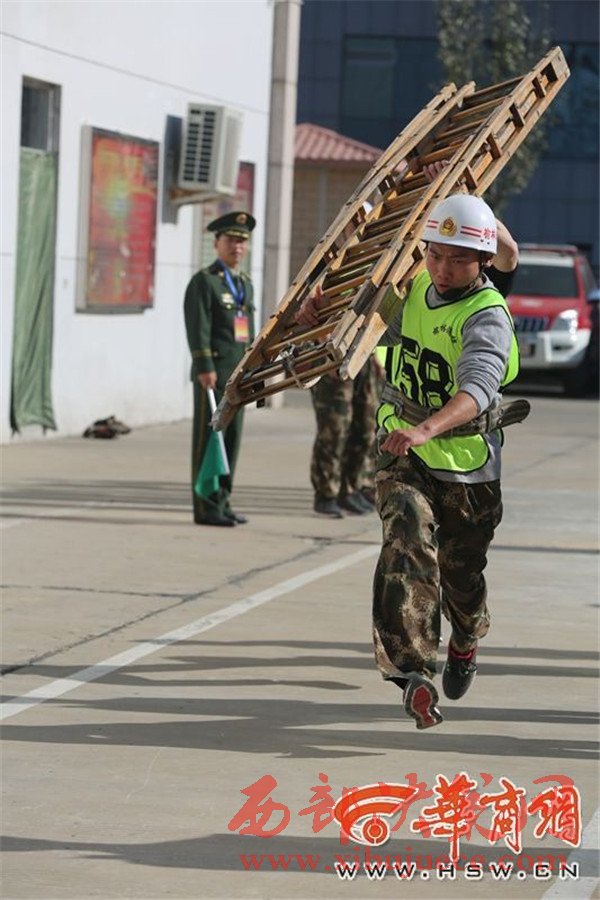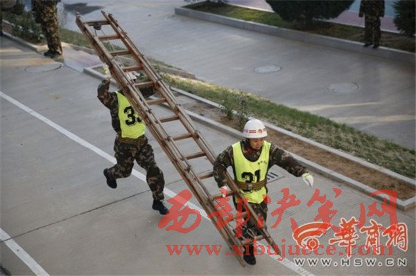 負重攀登10樓 榆林市消防大比武130余名鐵漢炫技