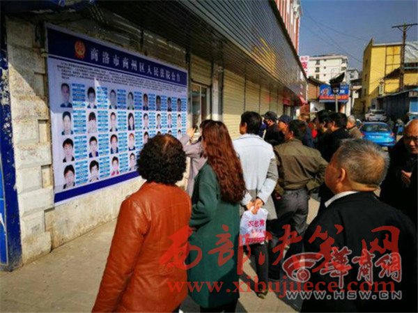 11月16日,在商洛區(qū)北新街中段府前路東口,不少市民正在查看剛貼出來(lái)的老賴(lài)圖片,商州區(qū)安監(jiān)局副局長(zhǎng)呂某的名字和圖片赫然在列。