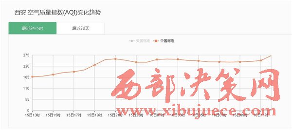這是15日二次限行后24小時內(nèi)西安空氣質(zhì)量指數(shù)的變化情況,不管你看沒看出來效果,反正我是沒看出來。