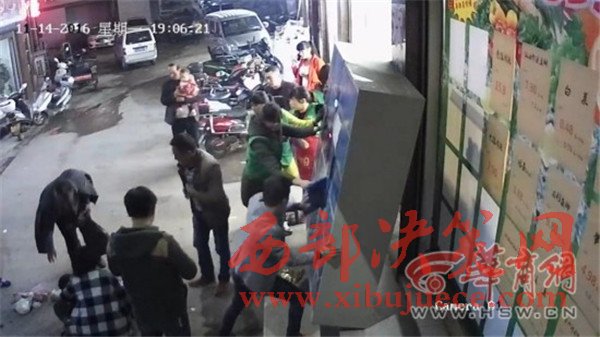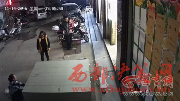 胡先生調(diào)取了事發(fā)時(shí)超市監(jiān)控視頻,華商報(bào)記者在視頻里看到:11月14日19時(shí)05分,一名婦女帶著小男孩走出超市,來(lái)到超市門口擺放的儲(chǔ)物柜取物。就在這名婦女剛拿出物品的一剎那,近兩米高的儲(chǔ)物柜突然倒下砸中兩人。巨大的儲(chǔ)物柜將孩子整個(gè)壓在了下面,婦女雙腿被壓住。周圍群眾幫助抬起了儲(chǔ)物柜。華商報(bào)記者注意到,從婦女取物到柜子倒下,事發(fā)經(jīng)過(guò)不到十秒鐘。