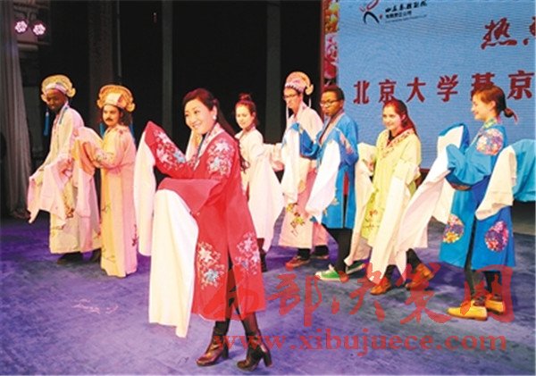 臺(tái)下就座的,則是一群特殊的學(xué)生——北京大學(xué)燕京學(xué)堂的來自42個(gè)國家和地區(qū)的學(xué)生們,他們把易俗社小劇場坐得滿滿當(dāng)當(dāng)。在英語翻譯的配合下,秦腔這種中國非物質(zhì)文化遺產(chǎn)的精髓被一點(diǎn)點(diǎn)輸入他們的腦海。