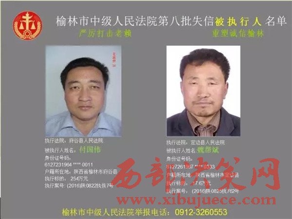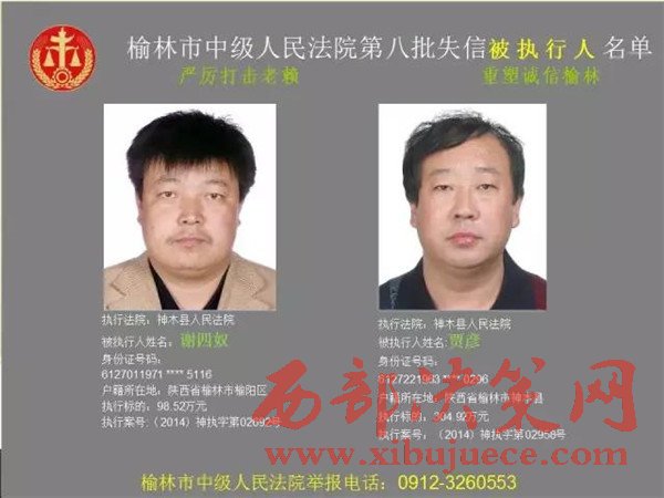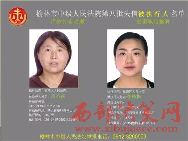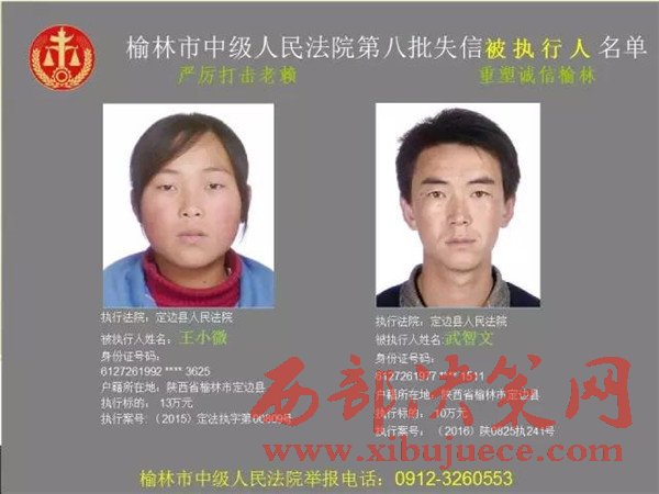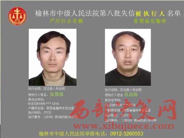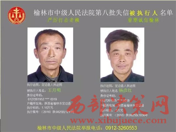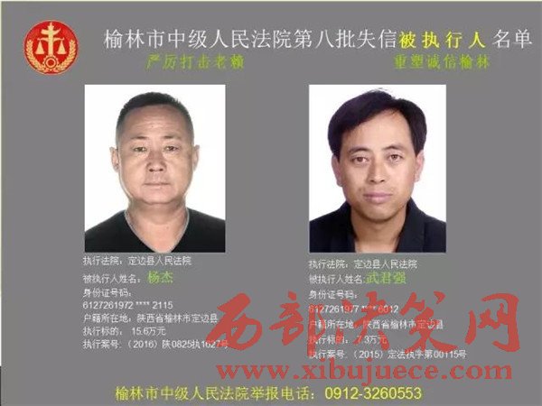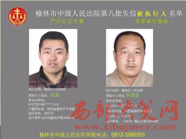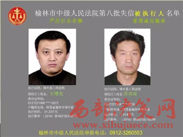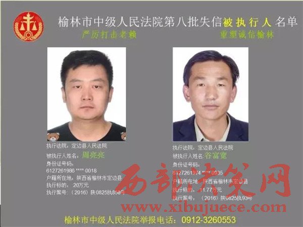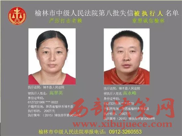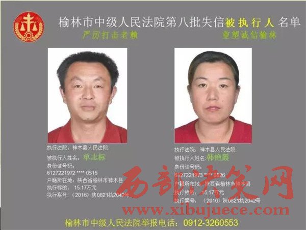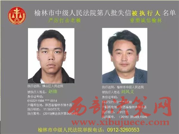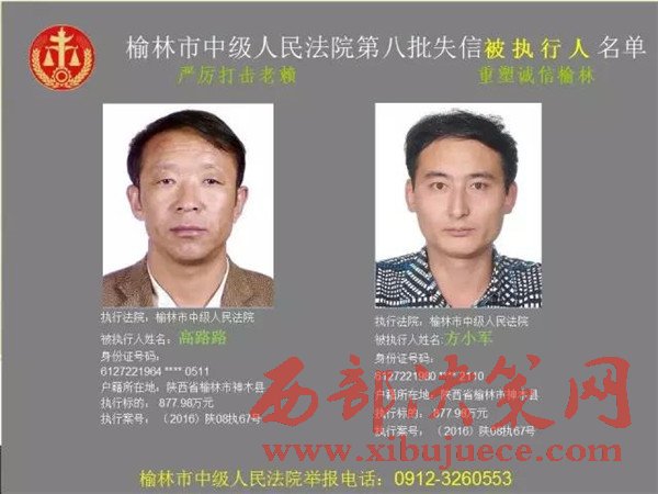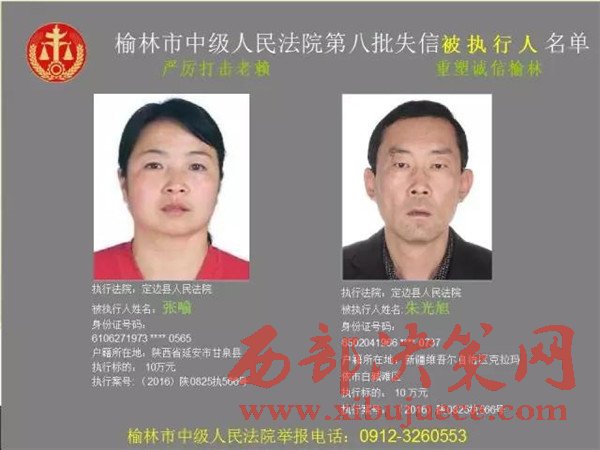 榆林中院最新發(fā)布第八批失信被執(zhí)行人"黑名單"