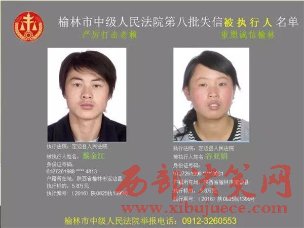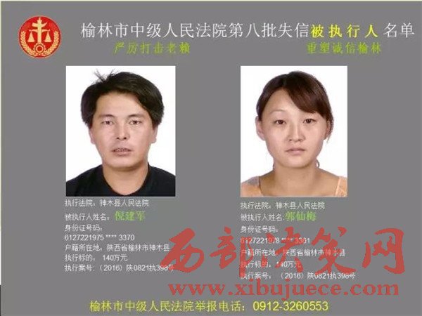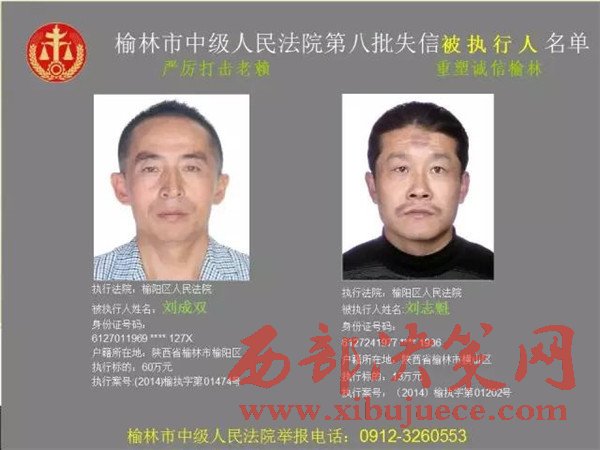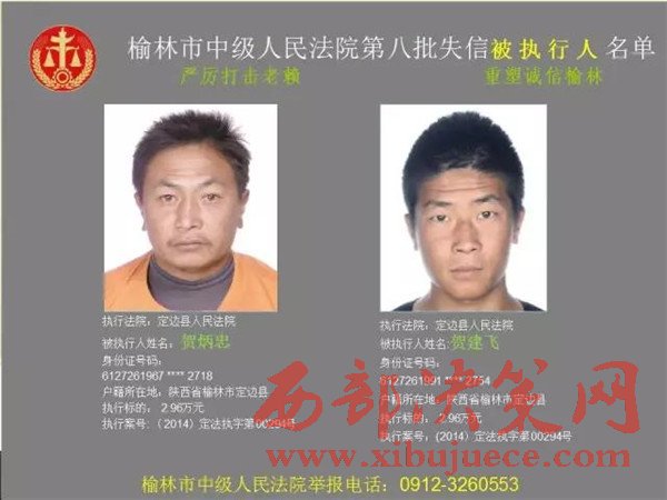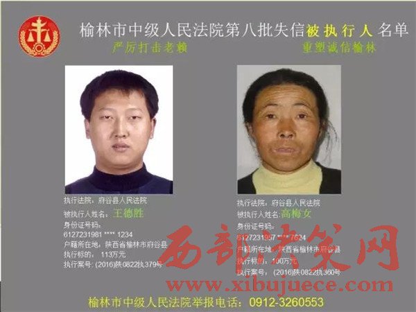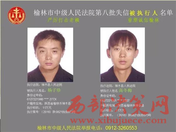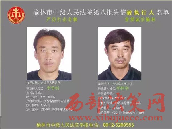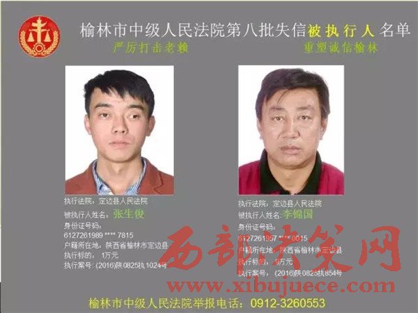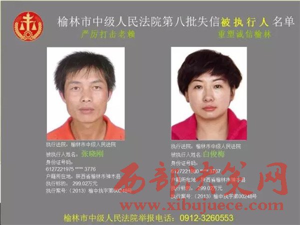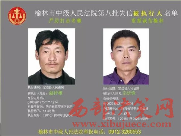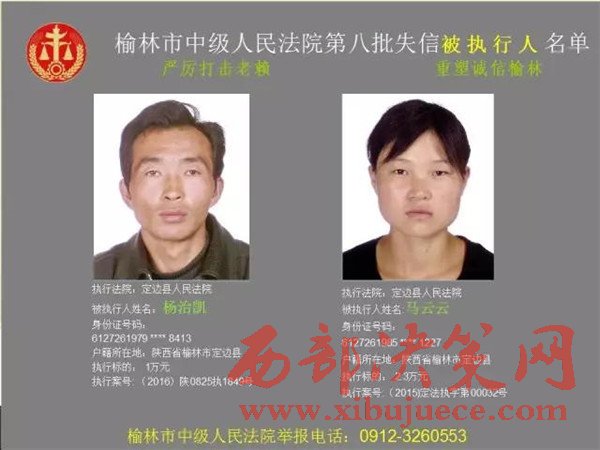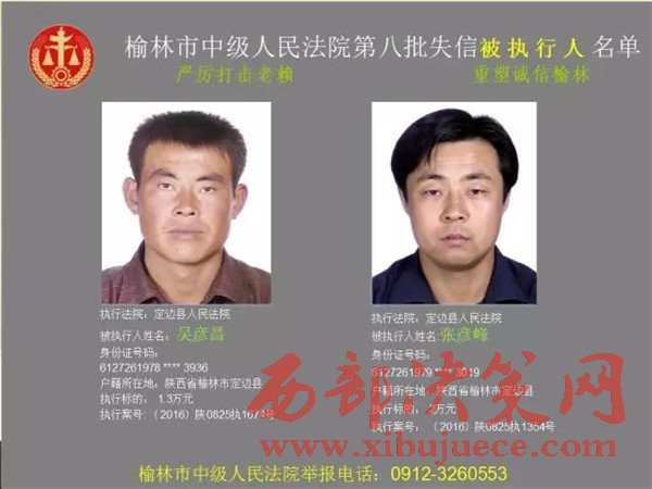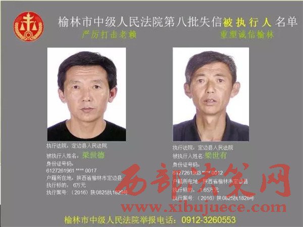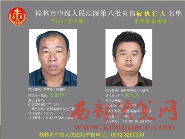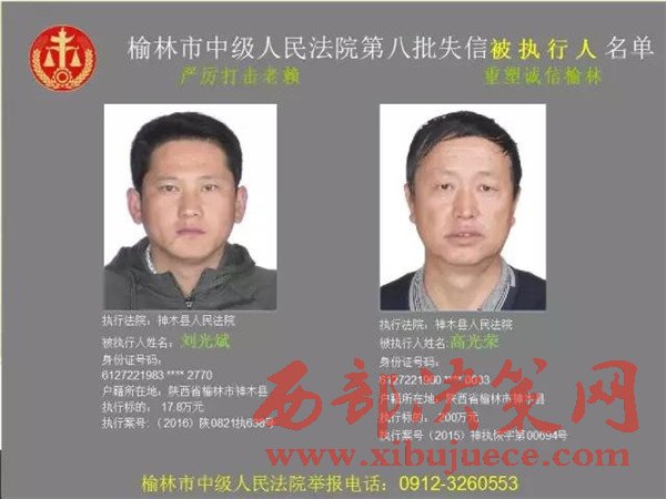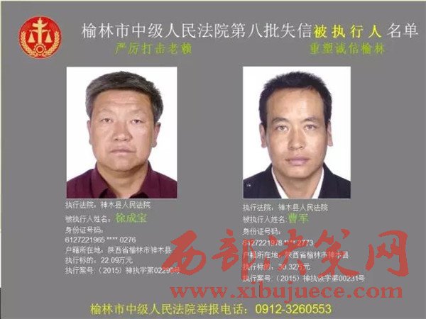榆林中院最新發(fā)布第八批失信被執(zhí)行人"黑名單"