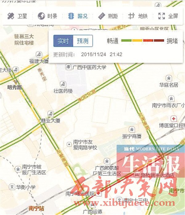 今年國慶長假前,南寧交警部門通過高德地圖發(fā)布了國慶期間城市道路交通運行情況分析。高德地圖針對南寧市國慶長假交通特點,對南寧各出城口銜接道路的擁堵狀況、施工對道路交通的影響等進行預測和分析,為交警部門部署國慶期間道路交通管理工作,加強措施保障道路暢通有序起到關健作用。