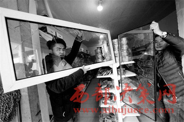 令趙女士沒想到的是,27日下午5點(diǎn)多,這群人又出現(xiàn)了。當(dāng)時(shí)趙女士的兒子田江正在里屋吃飯,外面的防盜門虛掩著,突然七八個(gè)男子帶著洋鎬把就沖了進(jìn)來,沖著貨架一通亂砸。田江說:“我聽見響動(dòng)掀開門簾出來,都是蒙面的小伙,我聽清楚了對(duì)方的一句話‘還敢開還砸!’,我當(dāng)時(shí)看著對(duì)方人多,沒敢追。”目前,趙女士一家已經(jīng)報(bào)警,韋曲派出所正對(duì)此事做進(jìn)一步調(diào)查。
