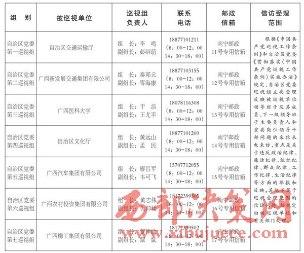 本輪巡視從12月初開始至2017年1月20日結(jié)束,自治區(qū)黨委7個巡視組將采取“一對一”方式對2個自治區(qū)政府工作部門、1所高校和4家自治區(qū)管理國有企業(yè)開展專項巡視。