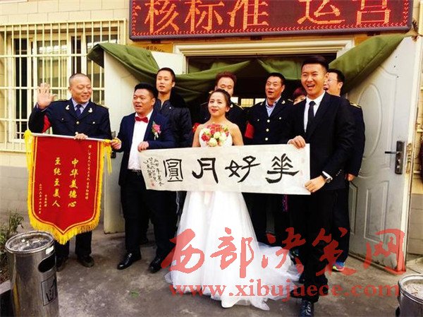 弄清楚事情的來龍去脈后,大伙恍然大悟,給這對有心的新人送去祝福的同時,現(xiàn)場還給其贈送了一幅寫著“花好月圓”的書法作品。白磊告訴記者,這幾天忙著籌備婚禮,實在忙得顧不上當(dāng)面感謝李師傅,由于他和愛人房佳歡年底工作都特別忙,婚后還得接著上班,估計隨后也沒有時間來感謝李師傅。房佳歡的家在臨潼,他們在西安市內(nèi)舉行婚禮,他和愛人商量了一下,就在結(jié)婚這一天路過辛家廟公交樞紐站時把這份心愿給了了,對他們來說也是一次美好的回憶。