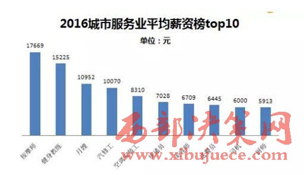 日前,某大型藍(lán)領(lǐng)招聘平臺(tái)招聘針對(duì)上述收入過(guò)萬(wàn)的城市服務(wù)行業(yè)進(jìn)行專(zhuān)項(xiàng)調(diào)查,結(jié)合該平臺(tái)招聘后臺(tái)大數(shù)據(jù),發(fā)布了2016城市服務(wù)業(yè)高薪榜。