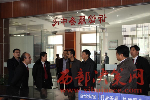 西部決策網(wǎng)訊(帥華鋒 杜杰 通訊員 王宏軍)近日,寶雞市市委政法委綜治辦調(diào)研員李曉科一行,來鳳翔法院檢查參與平安建設(shè)及社會(huì)治安綜合治理工作。縣委常委、政法委書記張軍良,縣法院代院長趙宏偉陪同檢查。
