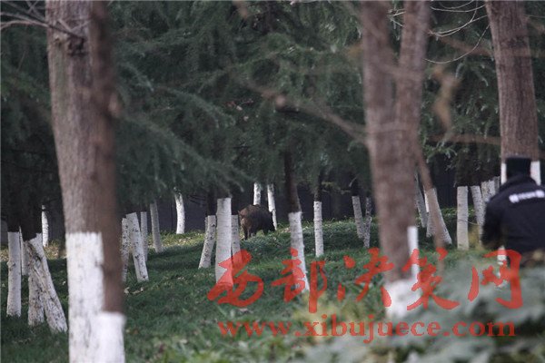 12月7日,安徽合肥,體重近200斤的成年野豬,出現(xiàn)在合肥市包河區(qū)政府大樓院內(nèi),民警兩次鳴槍,合肥市動物園工作人員吹了3針麻醉,“二師兄”愣是不倒。下午15時,包河區(qū)行政中心車來車往,前來辦事的群眾擠滿大廳,很多人并不知道,一只野豬就在附近溜達(dá)。“區(qū)政協(xié)一位女領(lǐng)導(dǎo)最先看到,上午7點多,就在國稅局后邊的綠化帶里頭。我也看到了,拿東西攆,它就往西頭跑。跟同事們說,都不相信我,講區(qū)政府怎么可能出現(xiàn)野豬。”物業(yè)師傅一臉認(rèn)真,恨不得用手在空中畫出野豬的模樣,“我是農(nóng)村過來的,那就是野豬,嘴巴又尖又長的嘛。”上午等保安們反映過來,野豬已經(jīng)不知所蹤,大家便不了了之。結(jié)果下午1時許,大家伙又出現(xiàn)了。“先在綠化帶里曬太陽,被我們趕到包河區(qū)檢察院院子里,接著又跑到區(qū)政府東邊的綠化帶里。”