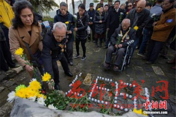 2016年12月12日,在第三個(gè)國家公祭日來臨之際,參加過1937年南京保衛(wèi)戰(zhàn)的抗戰(zhàn)老兵、侵華日軍南京大屠殺遇難者家屬、南京1213志愿者聯(lián)合會(huì)的志愿者們來到南京光華門遺址公園,向這片曾經(jīng)發(fā)生過激烈戰(zhàn)斗的陣地獻(xiàn)上和平歲月里的悼念菊花。 中新社記者 泱波 攝