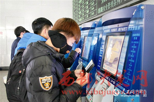 12月15日,旅客在包頭站自助售票機(jī)購票。