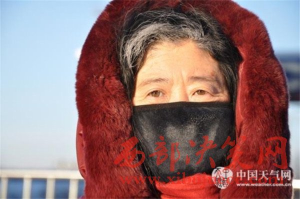 由于天氣寒冷,內(nèi)蒙古海拉爾的一位市民口罩結(jié)滿(mǎn)冰霜。