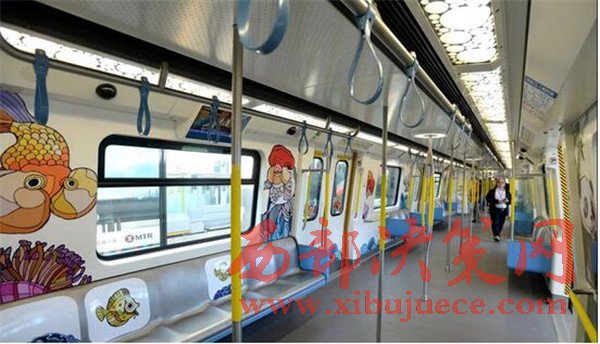 香港南港島線東段地鐵列車內(nèi)外景觀