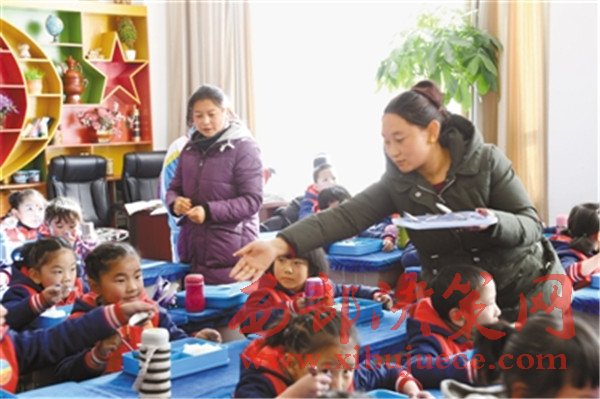 拉薩市城關(guān)區(qū)第二小學(xué)的家長代表正在給學(xué)生發(fā)放營養(yǎng)午餐。