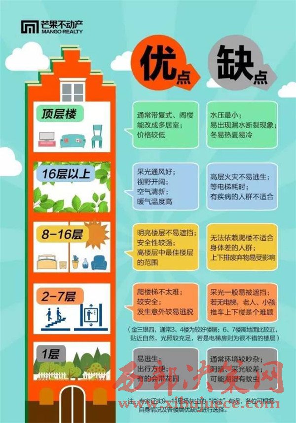 弊:在一些老的小區(qū),高層住宅樓一般水壓較小,有時(shí)會(huì)出現(xiàn)停水的現(xiàn)象。而且,生火災(zāi)時(shí)不易逃生,并且火災(zāi)散發(fā)的有毒氣體都是由下向上擴(kuò)散的,因此是最危險(xiǎn)的樓層。