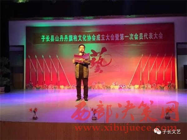 在會上,山丹丹旗袍文化協(xié)會的負責人白潔做了協(xié)會前期籌備工作的簡述,文廣局副局長宣讀了同意子長縣山丹丹旗袍文化協(xié)會成立的批復;民政局副局長趙和平頒發(fā)社會團體登記證。會中還進行了對協(xié)會的理事會,監(jiān)事會,主席團成員的選舉。當選為協(xié)會主席的白潔在會上做了表態(tài)發(fā)言,并代表協(xié)會向協(xié)會的顧問李建中、王明如,名譽主席王晶、張琴頒發(fā)了聘書。最后,協(xié)會會員還為觀眾們準備了一道文藝表演的盛宴,大會在星光大道歌手孫秸的一曲《山丹丹開花紅艷艷》中勝利中閉幕。
