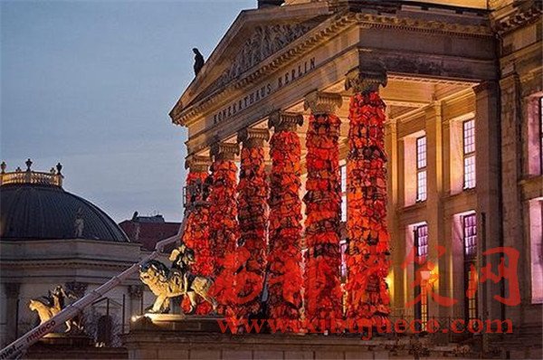 因其激進的藝術(shù)而聞名,Ai Wei Wei對社會事件表態(tài)并不陌生。這個#救救航海者系列用1400個明亮的橙色救生衣大膽地覆蓋了德國柏林音樂廳的支柱。此外還有一個掛著標簽的救生艇。這個系列呼吁大家重視尋求庇護的難民。