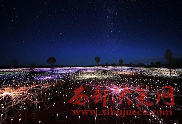 英國藝術(shù)家Bruce Munro之前已經(jīng)創(chuàng)造了各種版本的大型發(fā)光作品,不過直到2016年他才突然開竅,在澳大利亞砂巖巨石烏魯魯上面進行創(chuàng)作,這也啟發(fā)了我們所有人。Tili Wiru Tjuta Nyakutjaku是該地區(qū)原住民的本地語言,愿意是“一起來看這些美麗的燈光”,將一直展出至2017年。