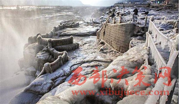 這些冰掛都是黃河水從瀑布傾瀉而下,冒起的水霧迅速凍結(jié)而成。兩岸的冰掛晶瑩剔透、造型各異,有的像龍須,垂懸在巖石上;有的如無(wú)暇白玉,鑲嵌在河岸旁。