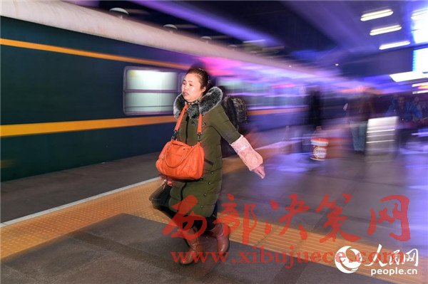 1月13日,旅客檢票進(jìn)站后,向列車(chē)飛奔而去。