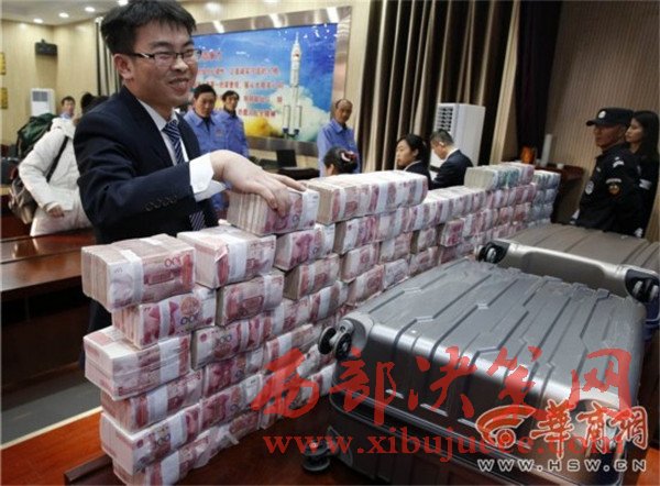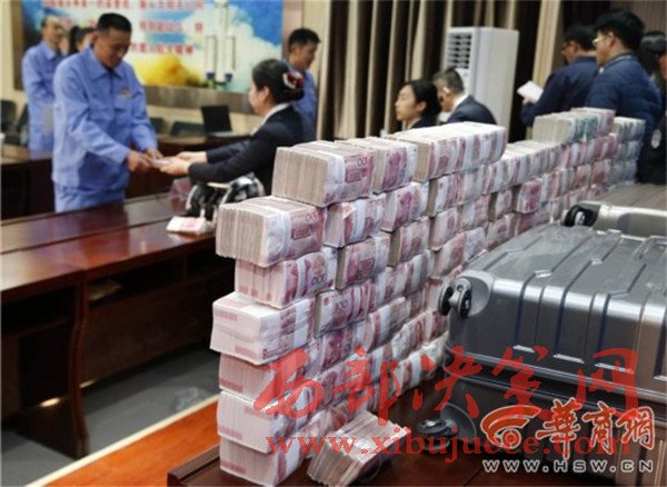 昨日上午9時20分,裝著1000萬現金的武裝押運車開到工地,安保人員和企業(yè)員工將10萬元一捆的百元大鈔碼出了一座“錢山”,看著眼前堆成小山似的現金,早早前來排隊的農民工們也是興奮不已。