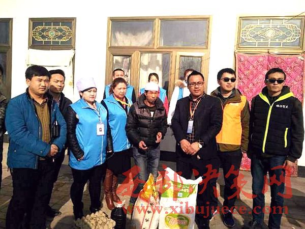 1月13日,寧夏海興義工聯(lián)合會銀川辦事處的工作人員來到銀川市賀蘭縣南梁臺子鐵東村、鐵西村,慰問當(dāng)?shù)?戶孤寡貧困家庭,捐贈米面油和棉衣等生活物品,  “大娘,還有半個(gè)月就過年了,這是咱們企業(yè)的一點(diǎn)心意,祝您老身體健康,吉祥如意”。這次慰問空巢老人和貧困家庭的單位有:銀川培訓(xùn)學(xué)院、銀川美年大健康體檢醫(yī)院、海原馬軍飯莊、搏港旅游公司、寧夏雙玉農(nóng)業(yè)科技有限公司、寧夏塞杞源苗木專業(yè)合作社。今年年初,他們根據(jù)南梁臺子鄉(xiāng)提供的貧困戶名單,結(jié)合入戶走訪,最終確定了馬寶林、馬萍霞等8戶殘疾、孤寡貧困家庭。由寧夏蕊杰伯港旅游有限公司、 銀川美年大健康體檢醫(yī)院等7家協(xié)會成員企業(yè)共同出資購買生活物品,逐戶慰問,反哺社會。