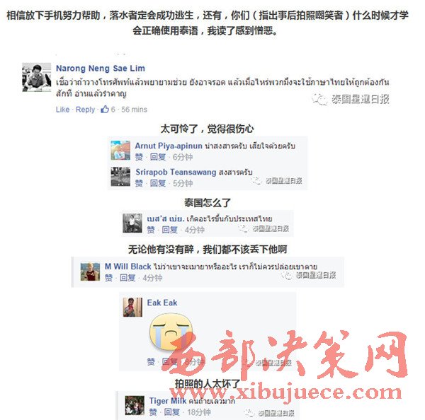 近日,據(jù)泰國網(wǎng)友稱,他的一位朋友因喝酒后頭暈,不慎跌入河道,由于不會水性,因此只能掙扎,并舉手向路人求救,而路人看見后立即沖上前,緩緩掏出手機(jī),開始各角度拍照,生怕自己錯(cuò)過了什么趣聞,并發(fā)送至臉書平臺,同時(shí)貼文表示,一弱智掉水里了,多名網(wǎng)友還回應(yīng)道:“他怎么掉下去的?哈哈哈。”
