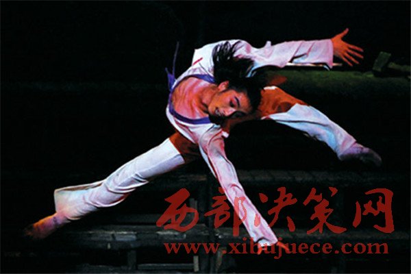 愛情是人類藝術永恒的主題。與西方的“羅密歐與朱麗葉”的愛情故事一樣,東方的“莫高和月牙”的愛情傳說同樣凄楚動人。來自中國蘭州歌舞劇院的舞劇《大夢敦煌》,就講述了一個感人泣下的愛情故事:女扮男裝的少年將軍月牙愛上了來自中原的畫師莫高,但遭到了大將軍的反對。月牙為保護莫高付出了生命的代價,化為月牙泉;莫高以泉潤筆,完成了藝術絕唱。