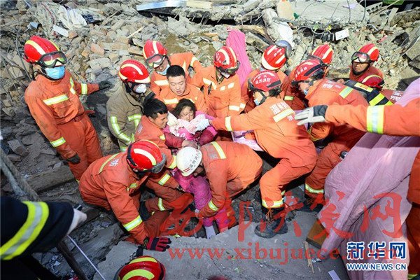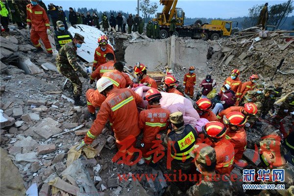 2月3日清晨,在浙江溫州文成民房倒塌事故現場,救援人員救出第二名幸存者。