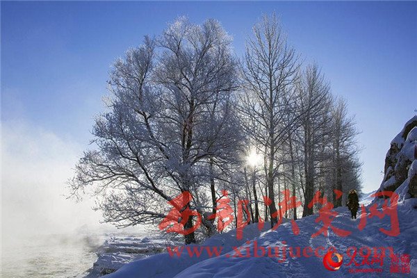 冬日的新疆布爾津是潔白的冰雪世界,銀裝素裹,玉樹瓊枝,小城披上了晶瑩潔凈的白紗。霧凇晶瑩剔透,蔚為奇觀,如此夢幻世界,讓人流連忘返。“霧凇小鎮(zhèn)”沖乎爾,因霧凇壯觀奇特而聞名,每年都有國內(nèi)外攝影家和旅游愛好者不遠千里為賞霧凇而來。每到冬季氣溫下降,沖乎爾盆地銀裝素裹,布爾津河谷煙籠寒水。河谷兩岸都掛滿了霧凇,滿山遍野的霧凇如禮花般綻放,雪的白色似乎掩蓋不住它們即將綻放的色彩,棵棵白樺宛若玉枝垂掛,簇簇松針恰似銀菊怒放,晶瑩多姿。