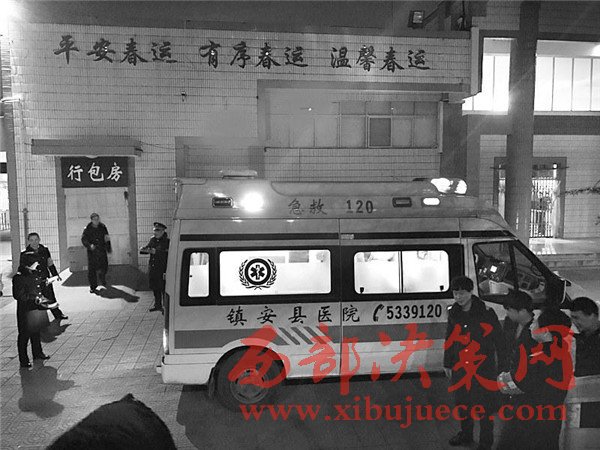 2月4日19時(shí)55分,重慶北開往呼和浩特東的K1536次緩緩地進(jìn)站停妥,如同往常一樣,站臺(tái)的工作人員有條不紊地組織著K1536次旅客乘降工作。“西安端乘降完畢……等等,1號(hào),K1536次1號(hào)臥鋪車廂列車員要交個(gè)病人下車醫(yī)治,是個(gè)孕婦,你過來下”!當(dāng)班的客運(yùn)值班員王麗英,從站臺(tái)中部邊奔跑著,邊詢問了解情況。正在站臺(tái)盯控值班的黨總支書記趙鵬、車站站長何曉輝、安全員呂建軍、客運(yùn)主任冀文娟立即緊隨上前了解情況,隨即通知客運(yùn)員許劍鋒立即撥打120,詳細(xì)告知情況,安排好隨車醫(yī)護(hù)人員,并安排站臺(tái)工作人員準(zhǔn)備好椅子、被褥等簡單的輔助用品。將兩名旅客接下,等待救護(hù)車的時(shí)候了解到,丈夫譚超、妻子鐘紅英都是重慶人,妻子已經(jīng)懷孕8個(gè)多月,預(yù)產(chǎn)期在2月20日左右,帶著2歲半的大兒子,原計(jì)劃坐火車從重慶到寶雞生產(chǎn),沒想到剛到鎮(zhèn)安站停車期間突然感到身體不適,有臨盆現(xiàn)象,不得已才要求下車。