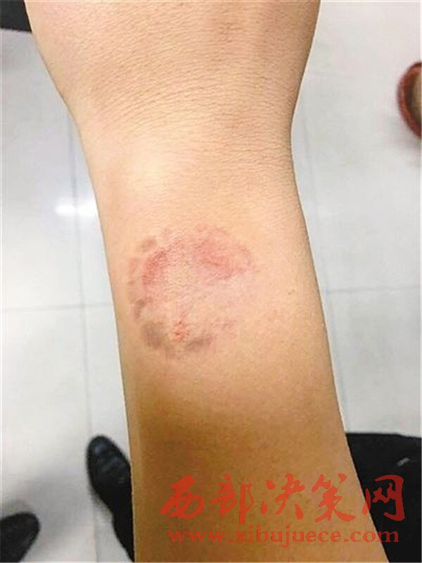 中隊(duì)民警翟偉、秦偉在將楊某帶離車輛的過程中,楊某突然咬住民警翟偉的左手腕處,經(jīng)民警現(xiàn)場多次警告仍不松口,在隨行輔警等人協(xié)助下,最終將楊某帶離車輛進(jìn)行了尿液檢測,而民警翟偉的左手腕處卻留下了清晰的牙印。