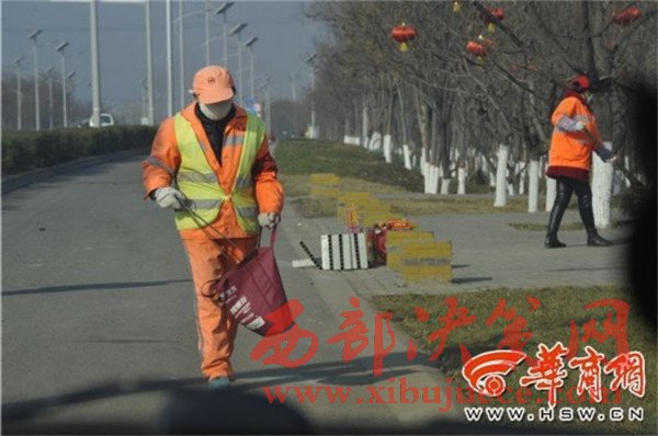關(guān)安余是長(zhǎng)安區(qū)城市管理局的保潔員,工作已2年,家就在附近的村子,他負(fù)責(zé)環(huán)山路北側(cè)上寨村至新莊一段保潔區(qū)。“過(guò)年這幾天車流量大,垃圾也就多,但我們的要求是保證路面不得出現(xiàn)煙頭、果皮紙屑、飲料瓶,眼睛看見(jiàn)了就得撿起來(lái),如果100米內(nèi)出現(xiàn)3個(gè)垃圾就算工作不合格。”關(guān)安余說(shuō)。